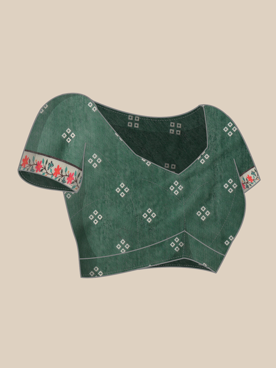 Blouse details - Blouse Color: Green | Blouse Material: Cotton Blend | Blouse Length: 0.8 meters | Blouse Work Type: Bandhani