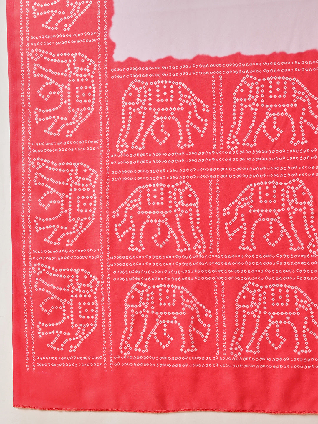 Border & Pallu details- Border Color: No Border | Border Work Type: Printed | Pallu Color: Red |Pallu Work Type: Bandhani