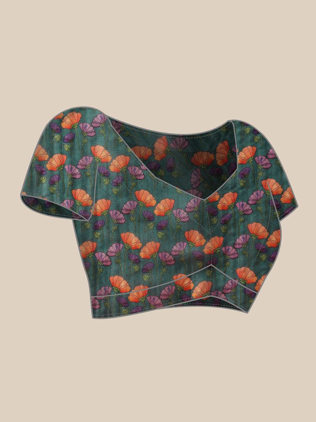 Blouse details - Blouse Color: Teal | Blouse Material: Cotton Silk | Blouse Length: 0.8 meters | Blouse Work Type: Printed