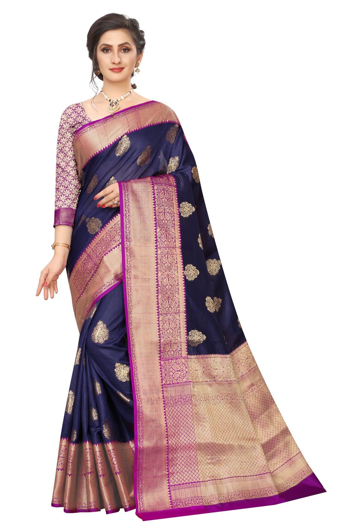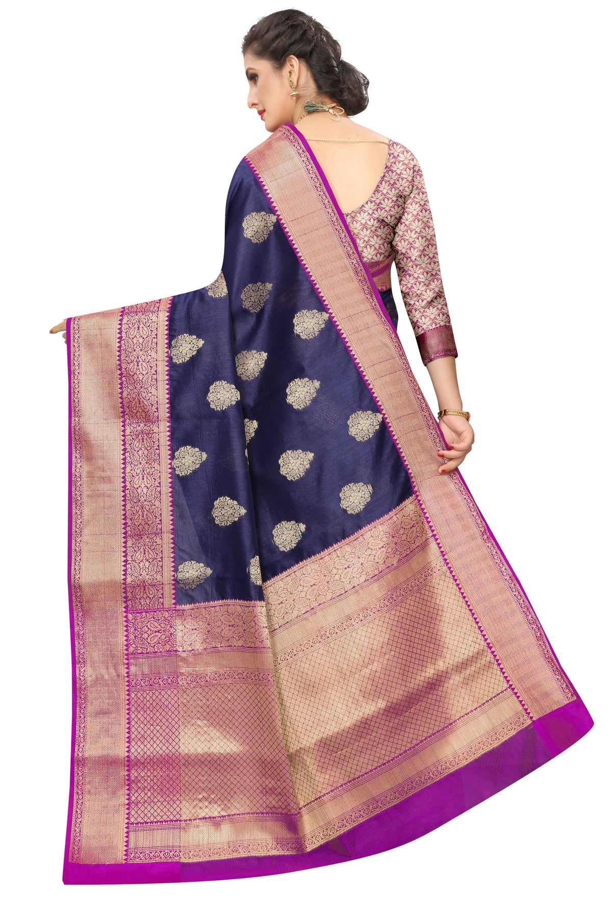 This saree is embellished with a zari woven thread, an all-over woven design with a heavy zari border, and a rich pallu saree. Perfect saree for the wedding & festive; this type of saree never goes out of style. This beautiful Banarasi art silk saree is from Silk Land. it is specially made for the festive and wedding season. It has a broad daman and ethnic motifs floral design. Saree Pallu is rich.