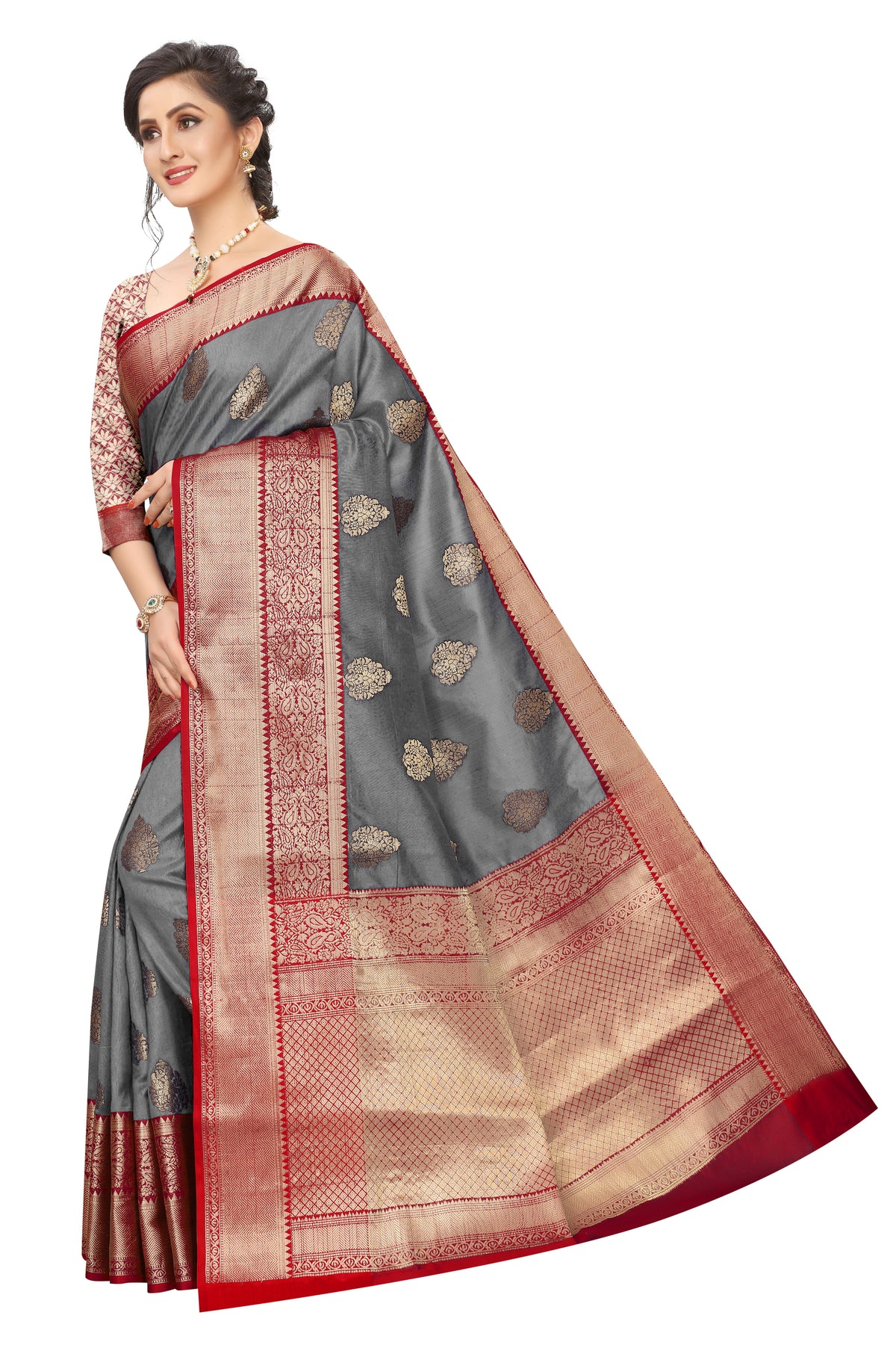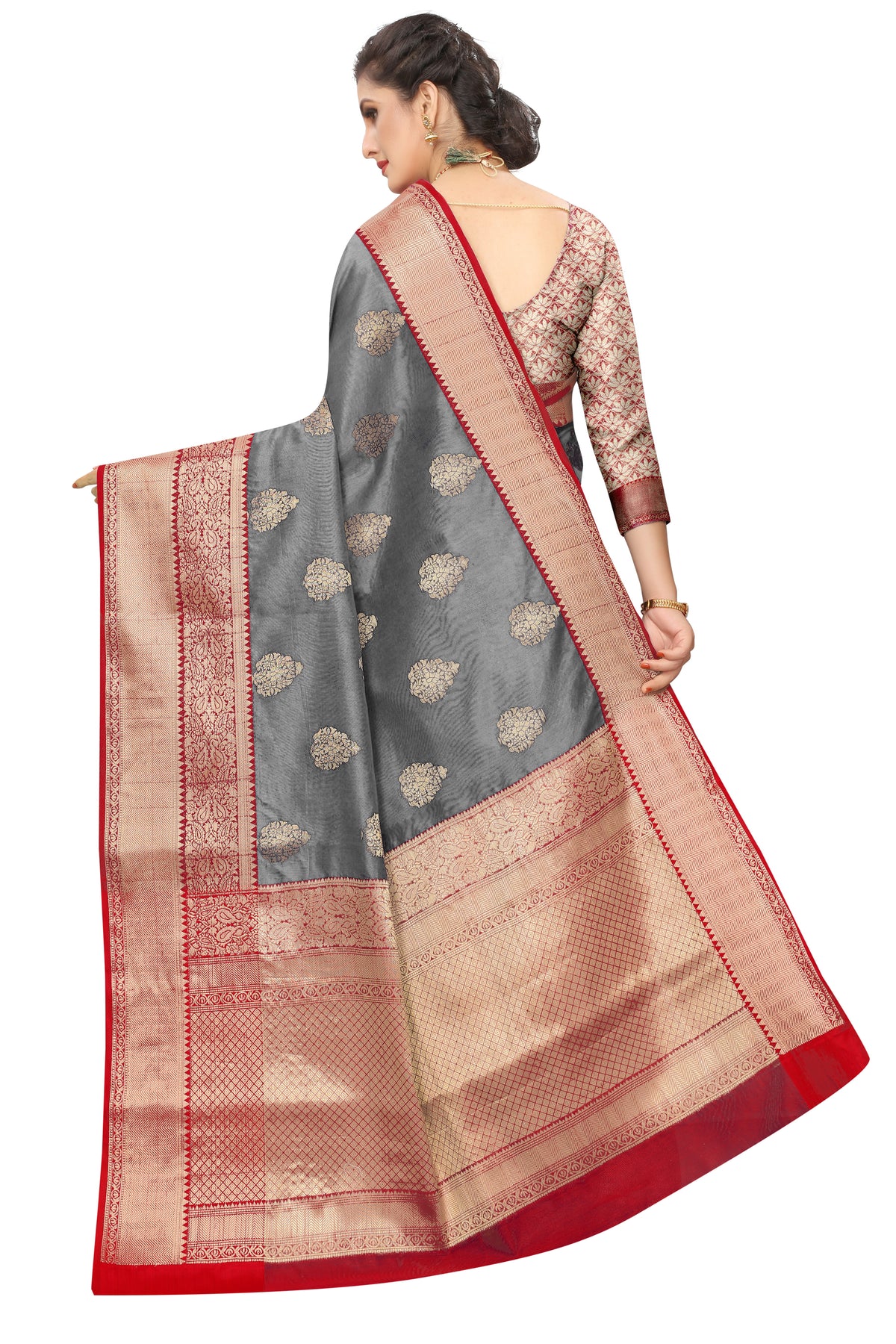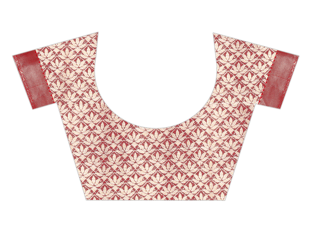 This saree is embellished with a zari woven thread, an all-over woven design with a heavy zari border, and a rich pallu saree. Perfect saree for the wedding & festive; this type of saree never goes out of style. This beautiful Banarasi art silk saree is from Silk Land. it is specially made for the festive and wedding season. It has a broad daman and ethnic motifs floral design. Saree Pallu is rich.