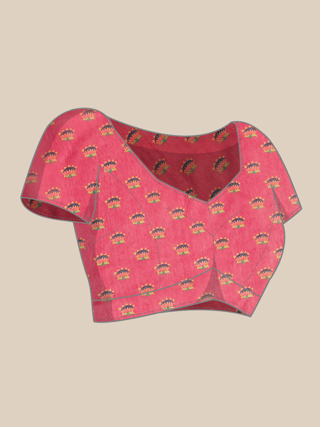 Blouse details - Blouse Color: Pink | Blouse Material: Chanderi Cotton | Blouse Length: 0.8 meters | Blouse Work Type: Printed